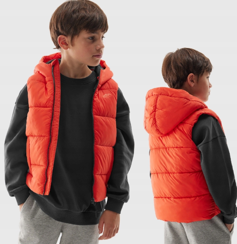 Kamizelka wykonana z wysokiej jakości materiałów, jak poliamid, poliester i wypełnienie z poliestru, zapewniając wysoki komfort noszenia. Zintegrowany kaptur i dwie kieszenie boczne dodają wygody i funkcjonalności. Dzięki technologii 4F Warm, kamizelka ta utrzymuje ciepło, zapewniając średni komfort cieplny. To idealny wybór dla dzieci, które uwielbiają spędzać czas na świeżym powietrzu, bez obaw o zimno.