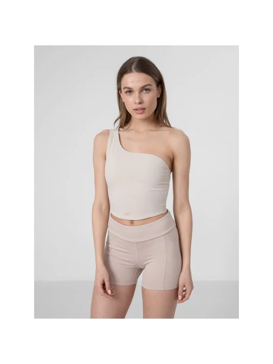 Crop top do jogi na jedno ramię damski. Uszyliśmy go z dopasowanej dzianiny z dodatkiem elastanu. Posiada elastyczne nici, które nie powodują otarć podczas sesji. pojedyncze, nieregulowane ramiączko, elastyczna dzianina, która zapewnia swobodę ruchów, miękki materiał z dodatkiem elastanu, szybkoschnące wykończenie wspiera odprowadzanie wilgoci na zewnątrz. Informacje szczegółowe o Crop top do jogi na jedno ramię damski Materiał główny: Poliamid 80%, Elastan 20% Sezon: Jesień-Zima 2022