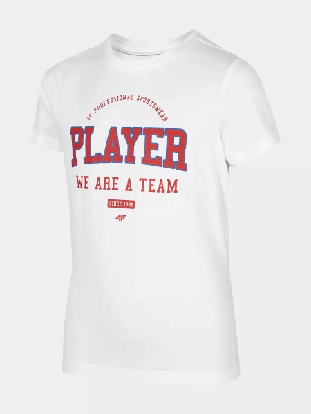 Klasyczna koszulka dziecięca marki 4F. Przewiewny i komfortowy t-shirt niezbędny w garderobie wiosenno-letniej!