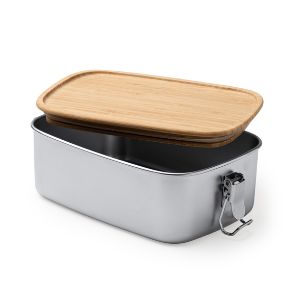 304 stalowe pudełko śniadaniowe z bambusową pokrywką. System blokady z klamrami bocznymi. Duża pojemność 1L na przechowywanie jedzenia. Konfigurowalny lunchbox. Stamina Daikon 4103
