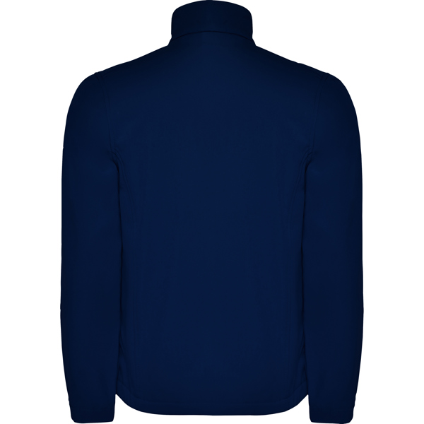 Dwuwarstwowa kurtka softshell z kontrastowym zamkiem z przodu odwróconym zamkiem. Podszyte tkaniną mikrorunową. Dwie boczne kieszenie i jedna lewa kieszeń na piersi z kontrastującymi odwróconymi zamkami. Ochraniacz podbródka z tego samego odwróconego materiału. Wewnętrzne regulacje boczne w rozmiarach dorosłych.