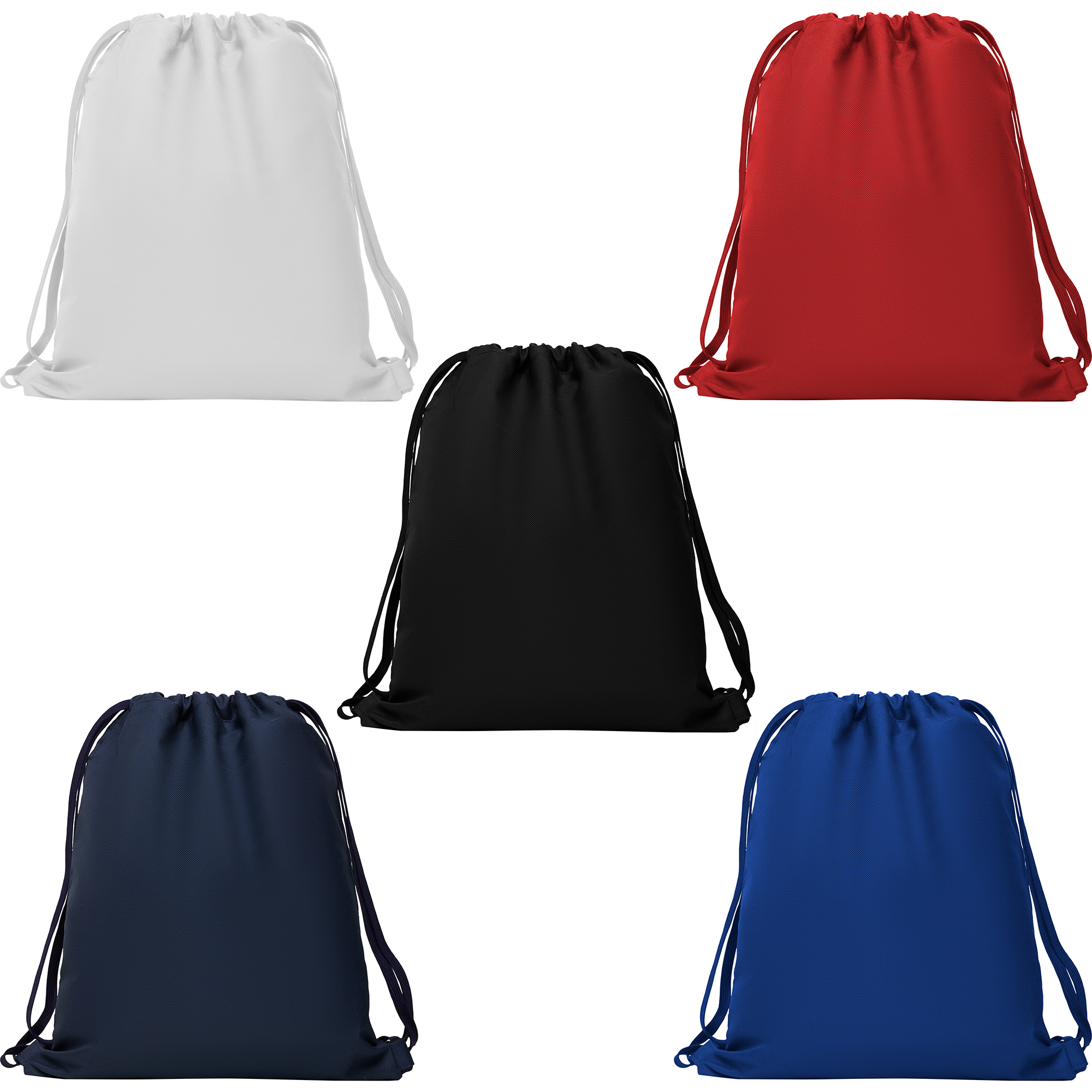 Sportowa torba ze ściągaczem w prostym designie dla łatwej personalizacji. Dopasowane płaskie sznurki. Wnętrze kieszeni z zamkiem. 100% poliester 600D.